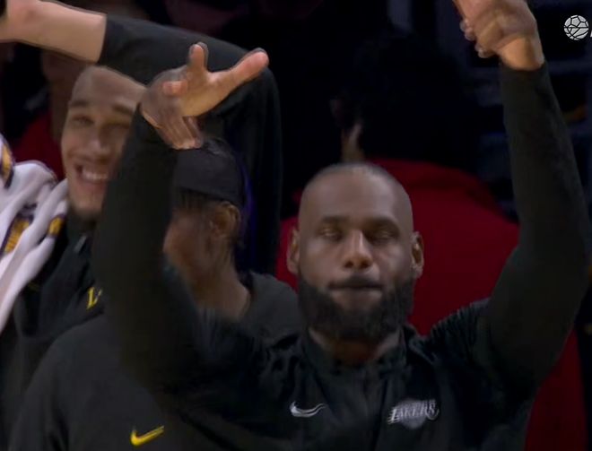詹皇父爱如山!自己两双不如儿子更强,布朗尼轰三分老詹带头庆祝